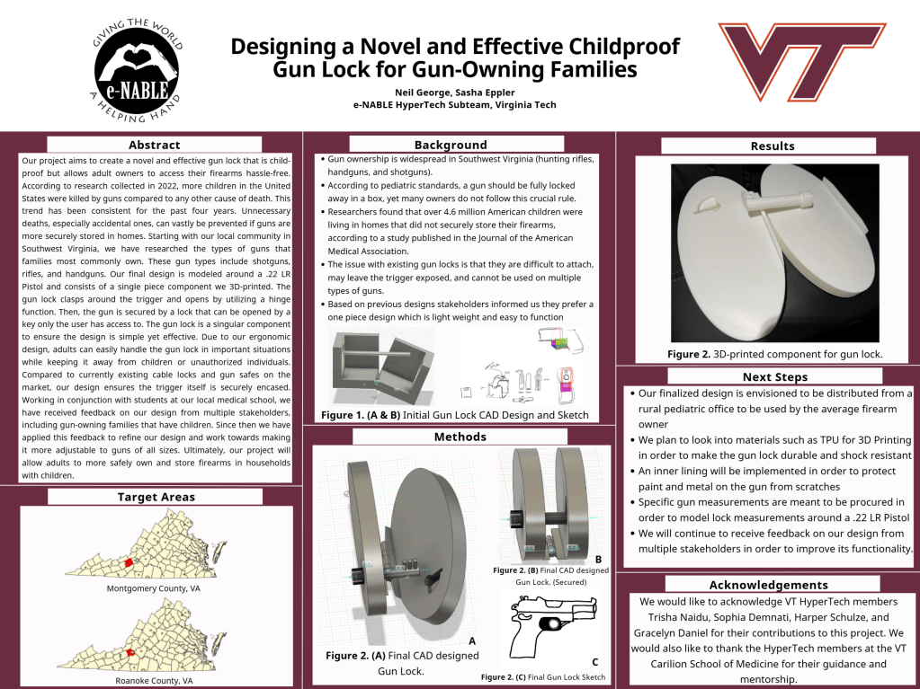 The Child-Proof Gun Lock Project is one of these projects and is focused on addressing the pediatric crisis of accidental firearm injuries and fatalities in children from the ages of 3-5 in the Roanoke and Montgomery Country areas.