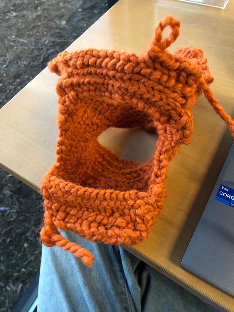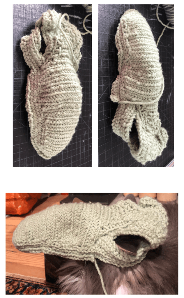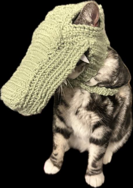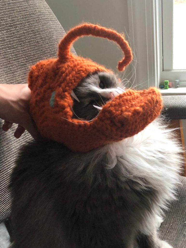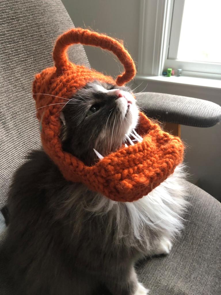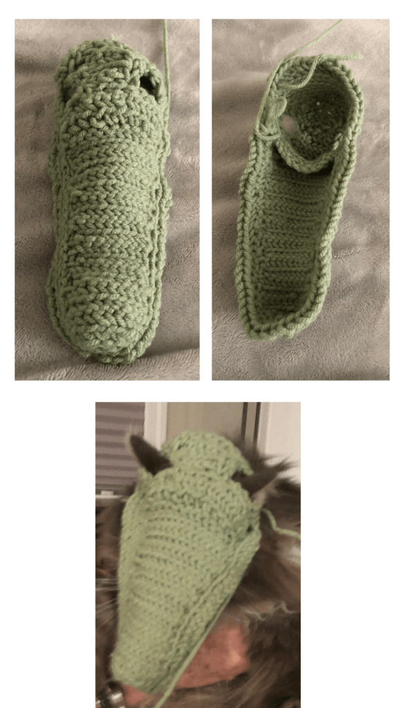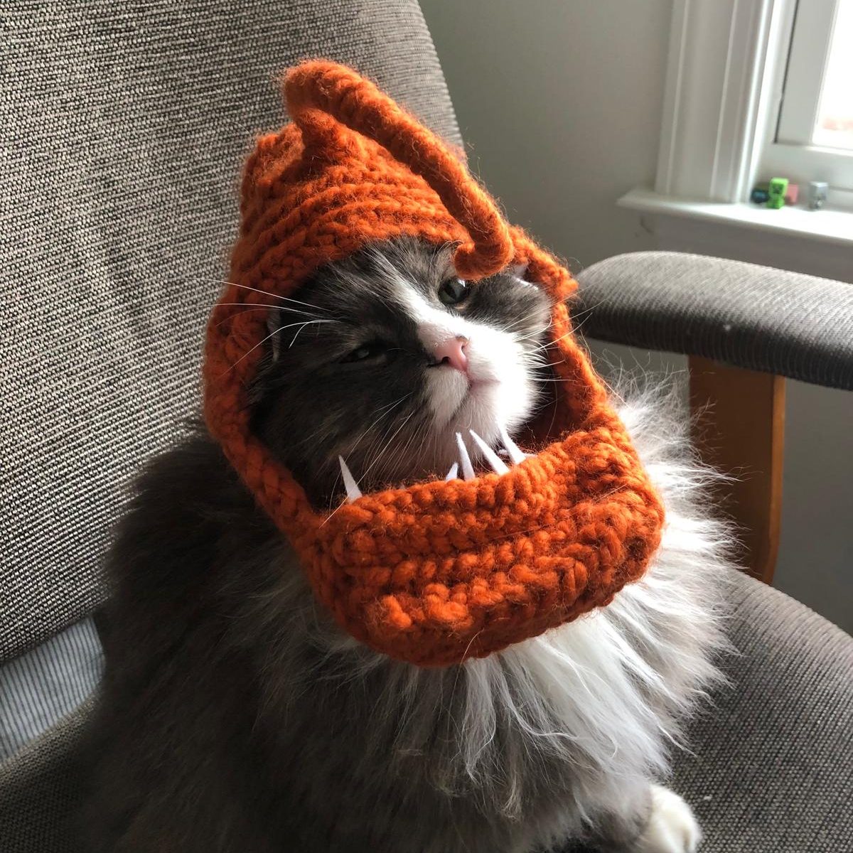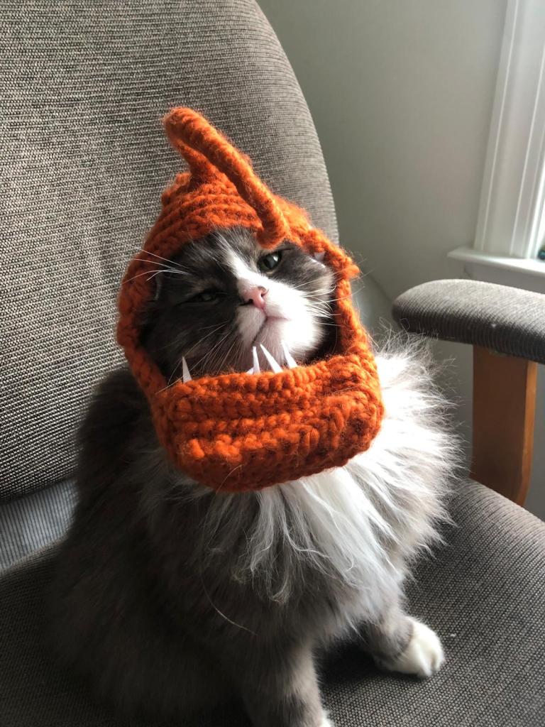 The idea was to make it like a helmet or balaclava as opposed to a hat, so I made the opening pretty large to make sure that the face of the cat could fit comfortably in the gap.
