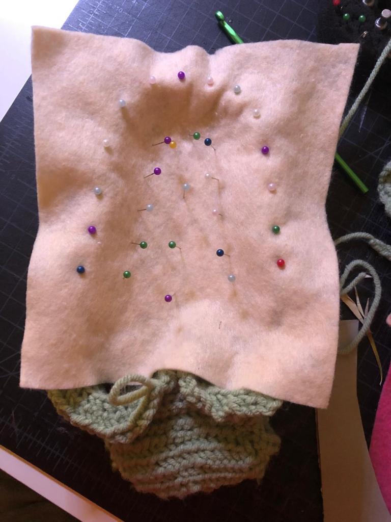Then to cover the cardboard, I added a felt lining that I sewed into the edges of the crochet to hide the stitches.